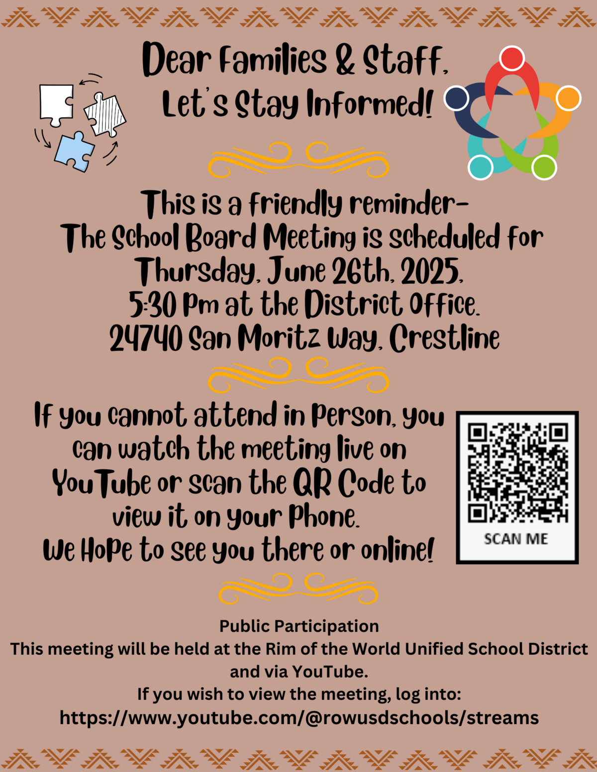 Dear ROWUSD Families and StaffOn behalf of ROWUSD, we send our warmest wishes to you and your loved ones for a Safe, Joyful, and Prosperous New Year! May 2026 shine with growth, happiness, and exc...