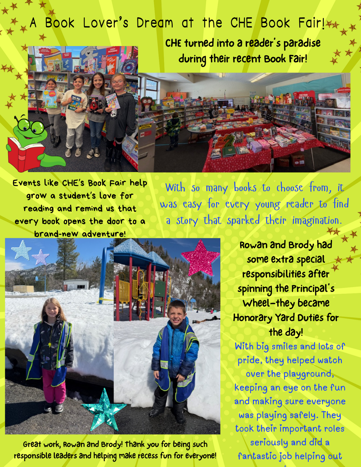 Page: A Book Lover’s Dream at the CHE Book Fair! CHE turned into a reader’s paradise during their recent Book Fair! Events like CHE’s Book Fair help grow a student’s love for reading and remind us that every book opens the door to a brand-new adventure! With so many books to choose from, it was easy for every young reader to find a story that sparked their imagination. Rowan and Brody had some extra special responsibilities after spinning the Principal’s Wheel—they became Honorary Yard Duties for the day! With big smiles and lots of pride, they helped watch over the playground, keeping an eye on the fun and making sure everyone was playing safely. They took their important roles seriously and did a fantastic job helping out around campus. Great work, Rowan and Brody! Thank you for being such responsible leaders and helping make recess fun for everyone!