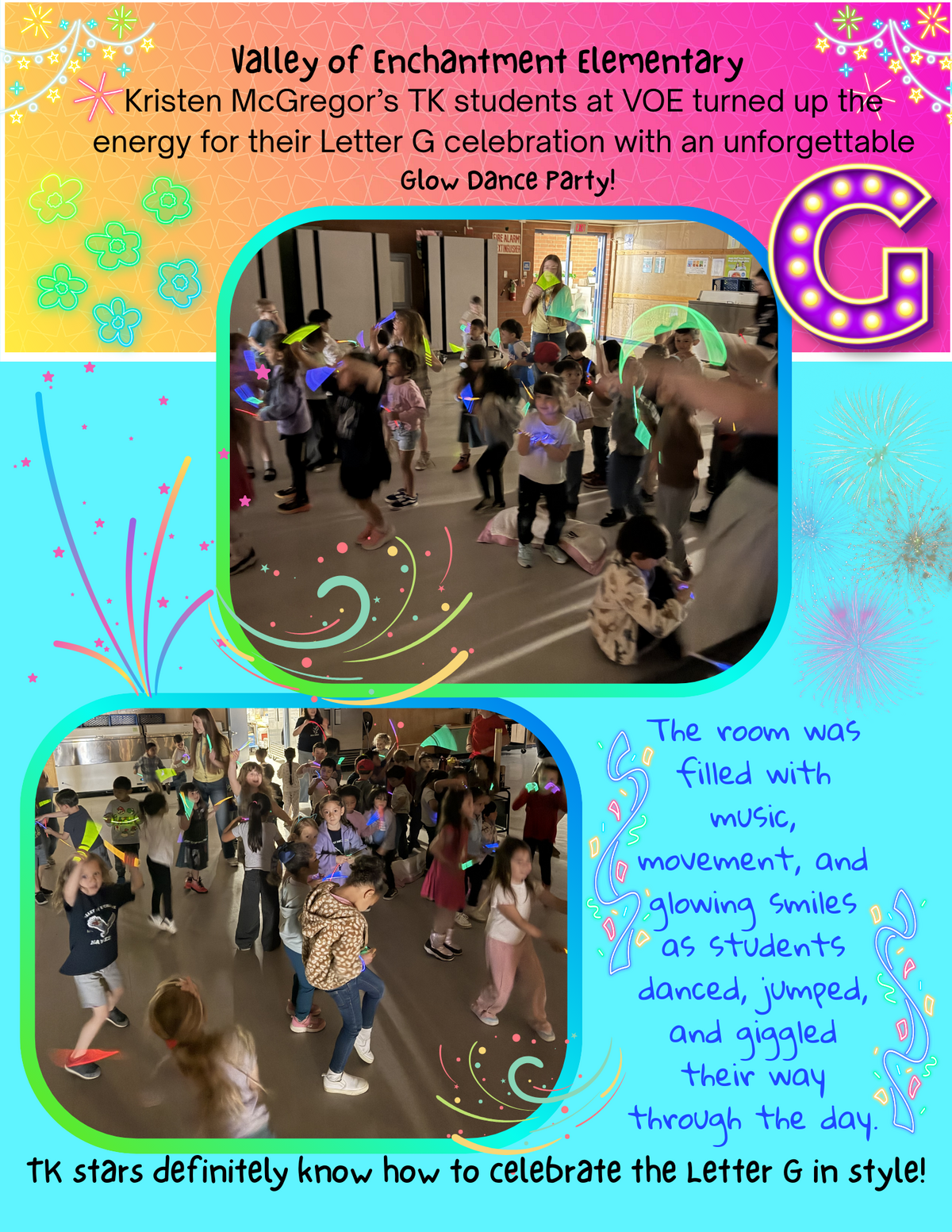 Page: Valley of Enchantment Elementary-Kristen McGregor’s TK students at VOE turned up the energy for their Letter G celebration with an unforgettable