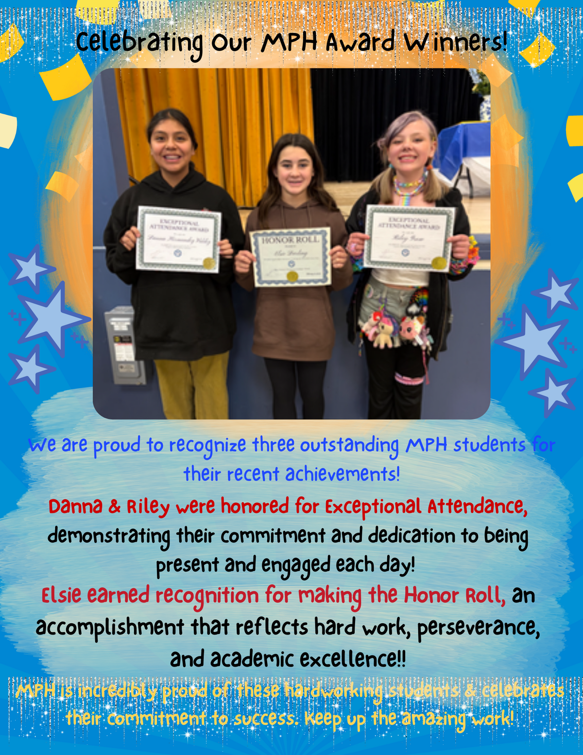 Elsie earned recognition for making the Honor Roll, an accomplishment that reflects hard work, perseverance, and academic excellence!! MPH is incredibly proud of these hardworking students & celebrates their commitment to success. Keep up the amazing work!