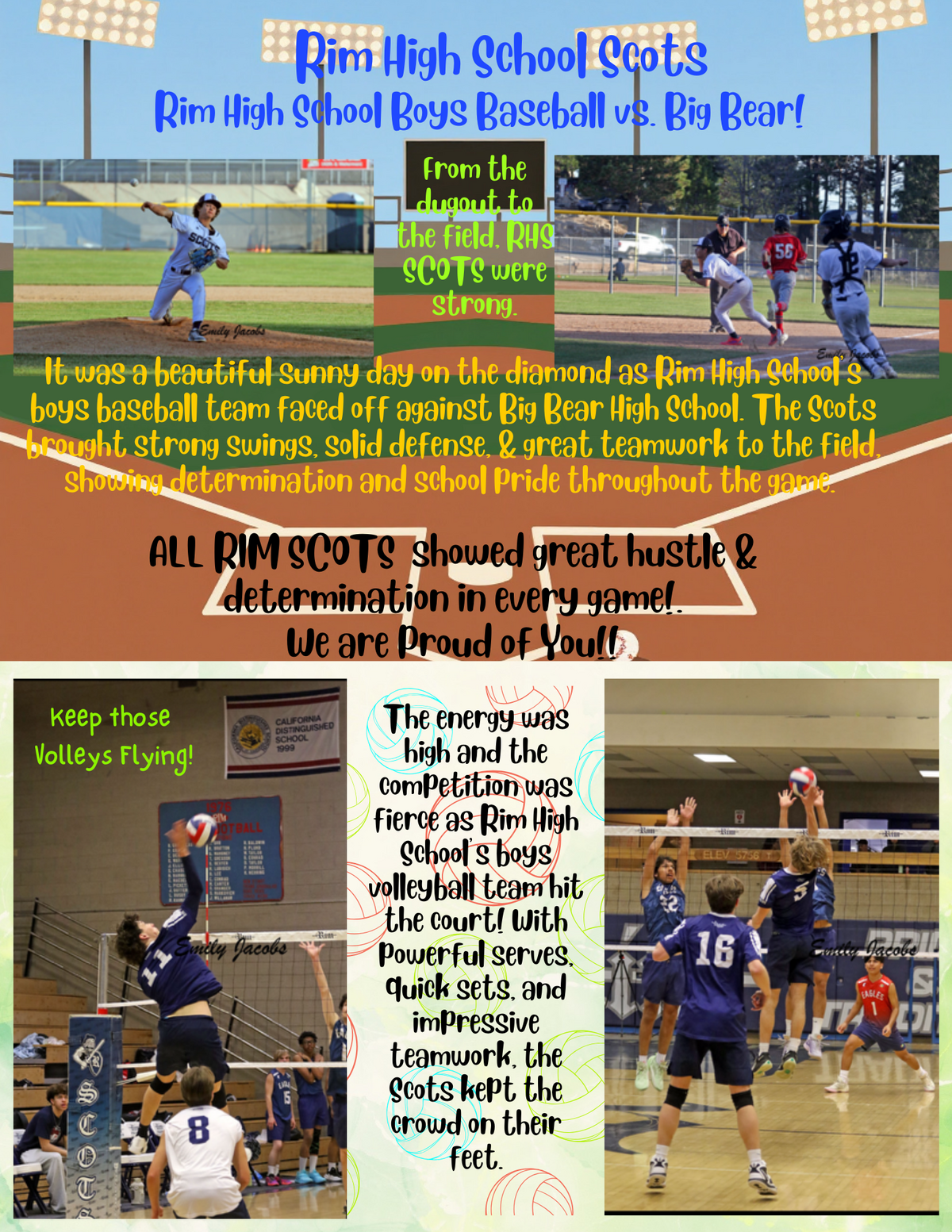 Page: Rim High School Scots-Rim High School Boys Baseball vs. Big Bear! From the dugout to the field, the RHS SCOTS were strong. It was a beautiful sunny day on the diamond as Rim High School’s boys baseball team faced off against Big Bear High School. The Scots brought strong swings, solid defense, & great teamwork to the field, showing determination and school pride throughout the game. ALL RIM SCOTS showed great hustle & determination in every game!.