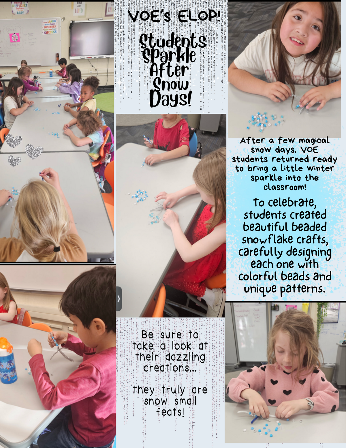 Page: VOE’s ELOP! Students Sparkle After Snow Days! After a few magical snow days, VOE students returned ready to bring a little winter sparkle into the classroom!