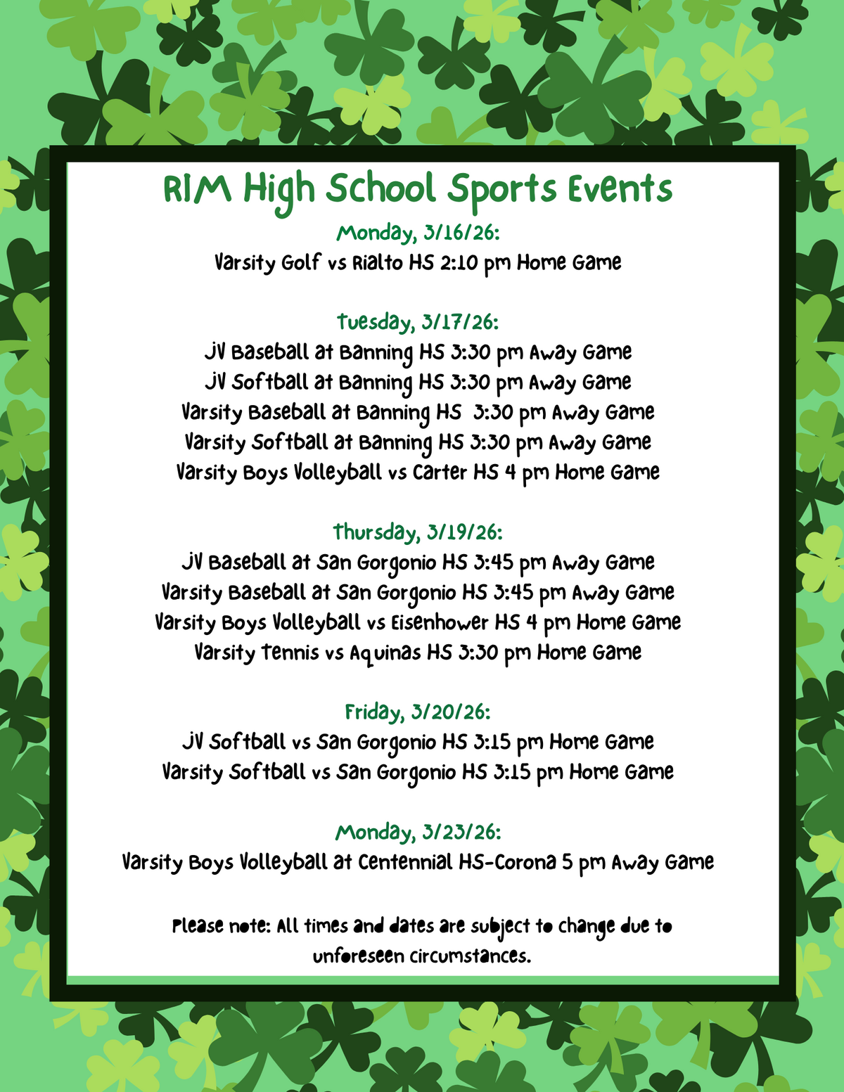Page: RIM High School Sports Events- Monday, 3/16/26: